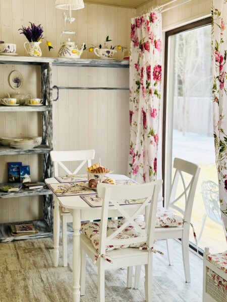 | Дом Семейный дом Прованс | 44 кв.м. | 2 чел. | Мебель (вешалка, зеркало, кровать двуспальная, кровать двухъярусная, прикроватные тумбочки, стол, ст... | |
