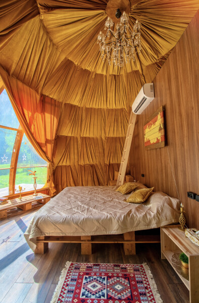 | Сфера Вокруг Света с банным чаном | 36 кв.м. | 2 чел. | Мебель (вешалка, зеркало, кровать двуспальная, прикроватные тумбочки, стол, стулья, шкаф), Мини-кухн... | |